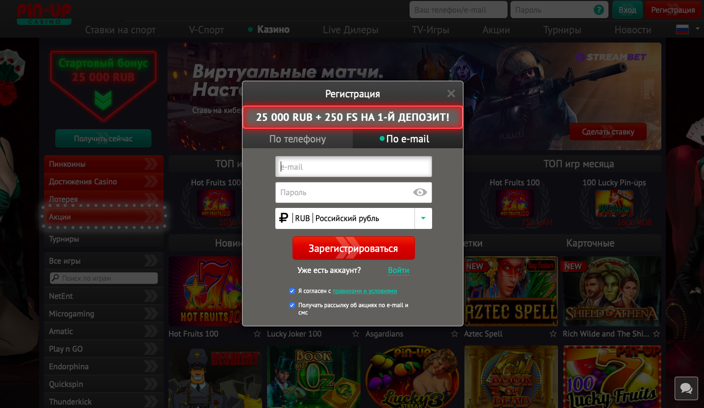 Вход в онлайн казино Pin Up